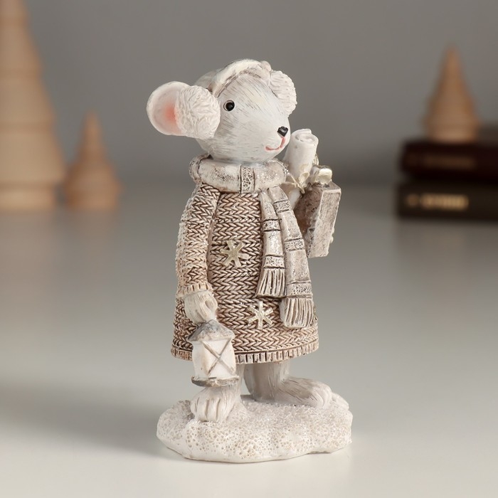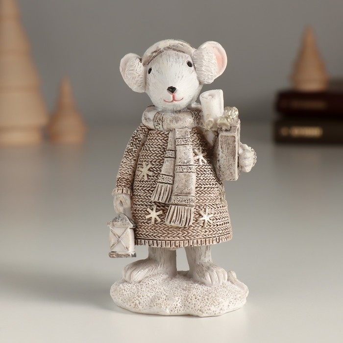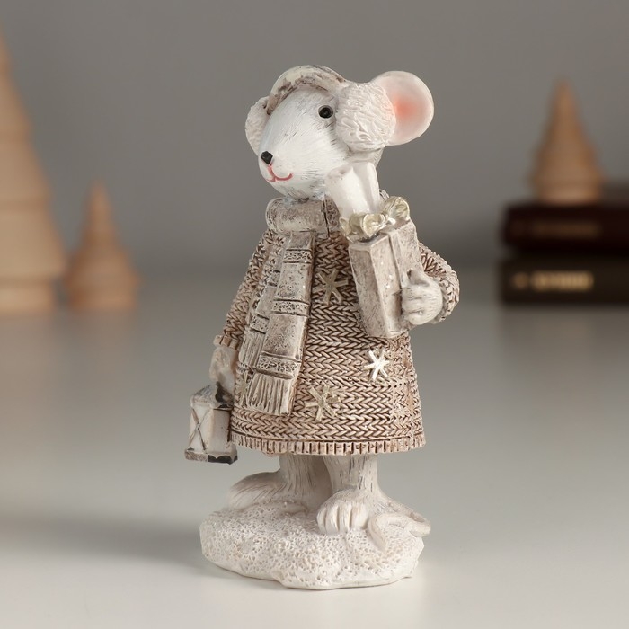 Сувенир полистоун "Белая мышка с покупками в руках" 5,5х4х10 см