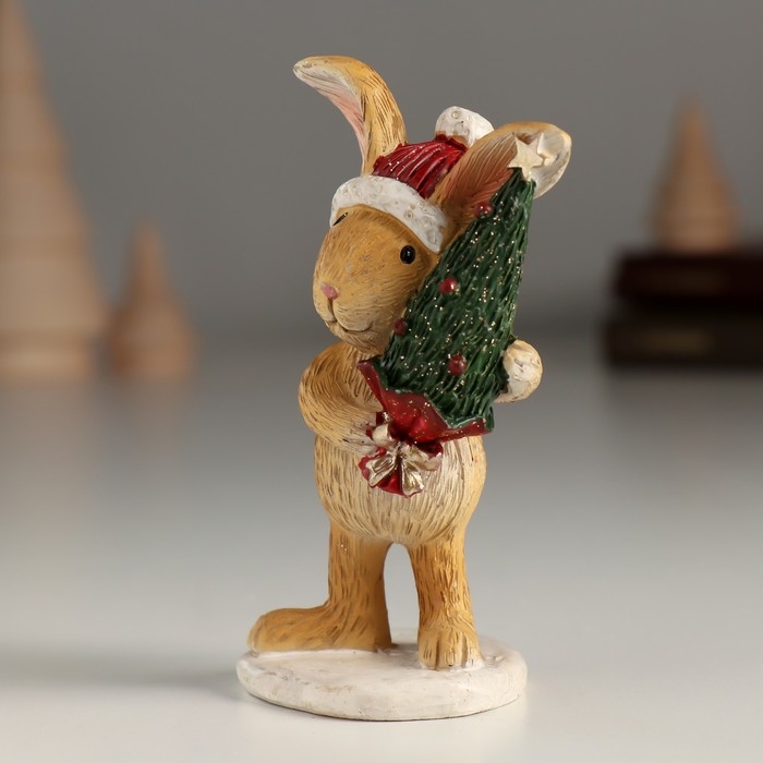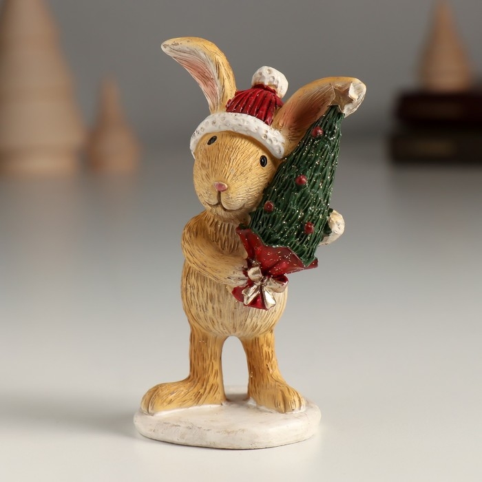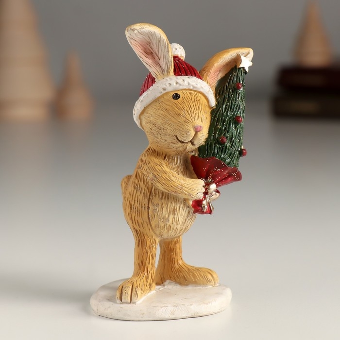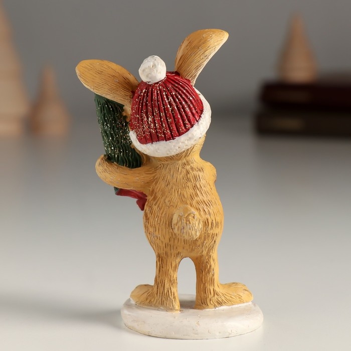 Сувенир полистоун "Зайка в шапке с ёлочкой" 5х4,5х10 см