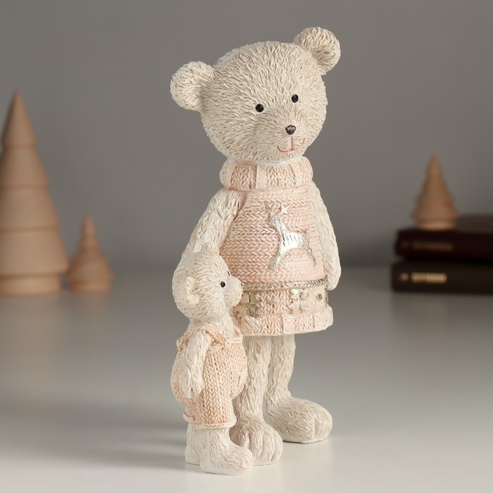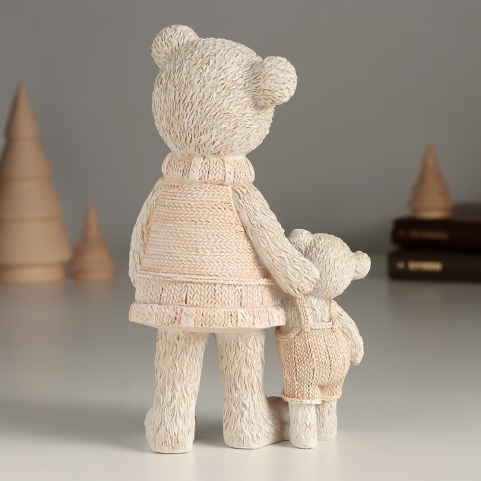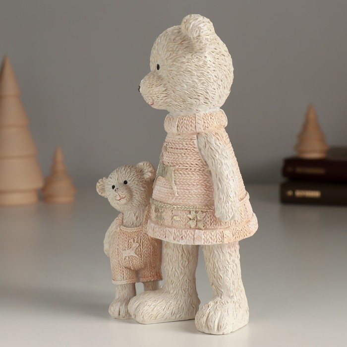 Сувенир полистоун "Мишка с малышом в розовых свитерах" 9х7х16 см