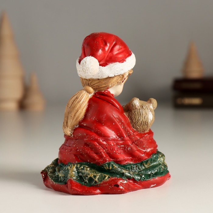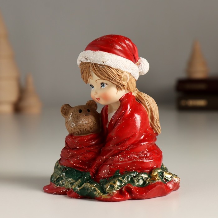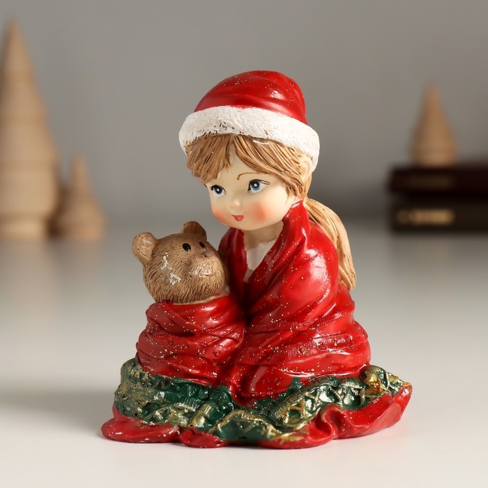 Сувенир полистоун "Малышка в красном пледе с медвежонком" 7,5х6х8,5 см