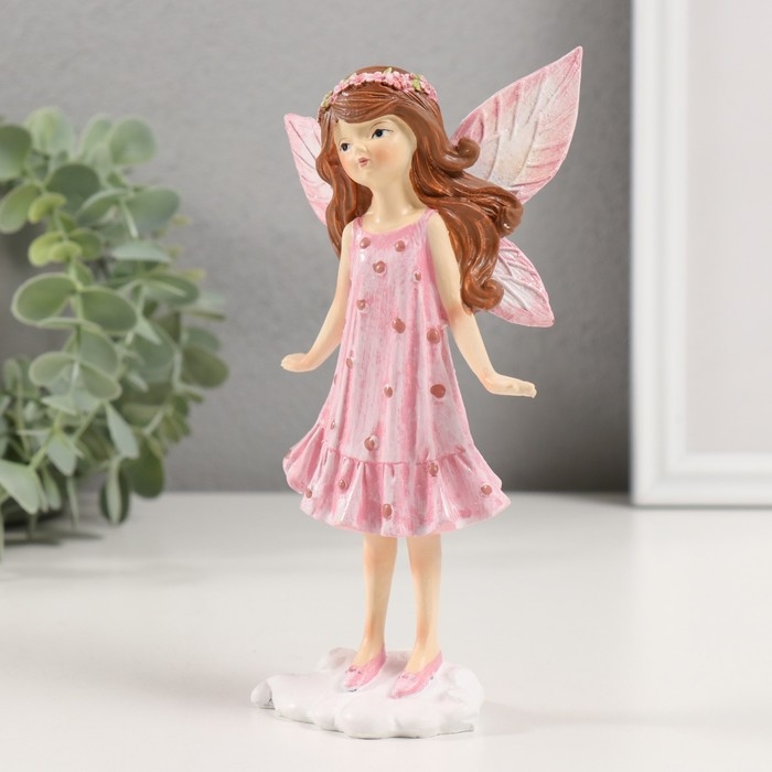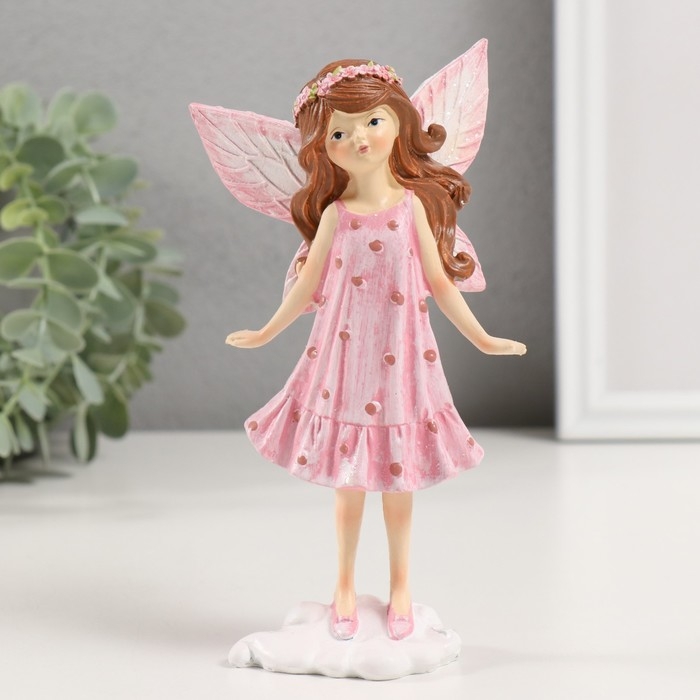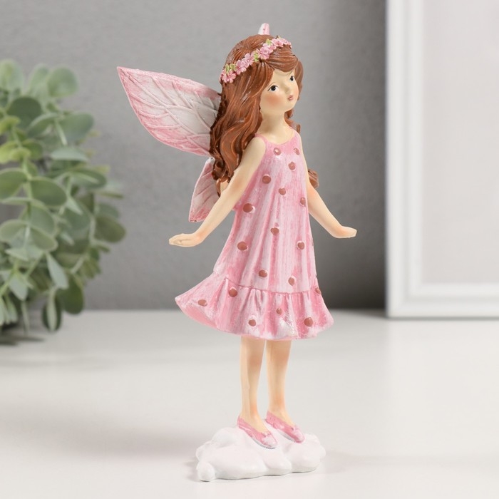 Сувенир полистоун "Девочка-ангел с розовым венком в волосах" 9х6,5х16,5 см