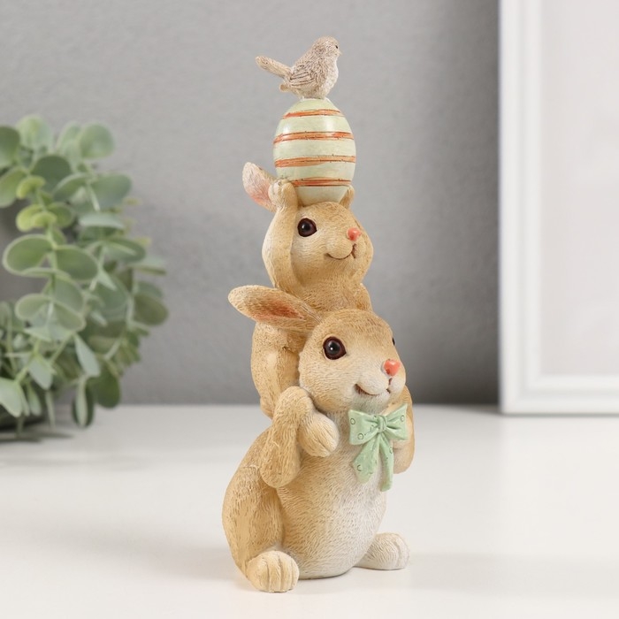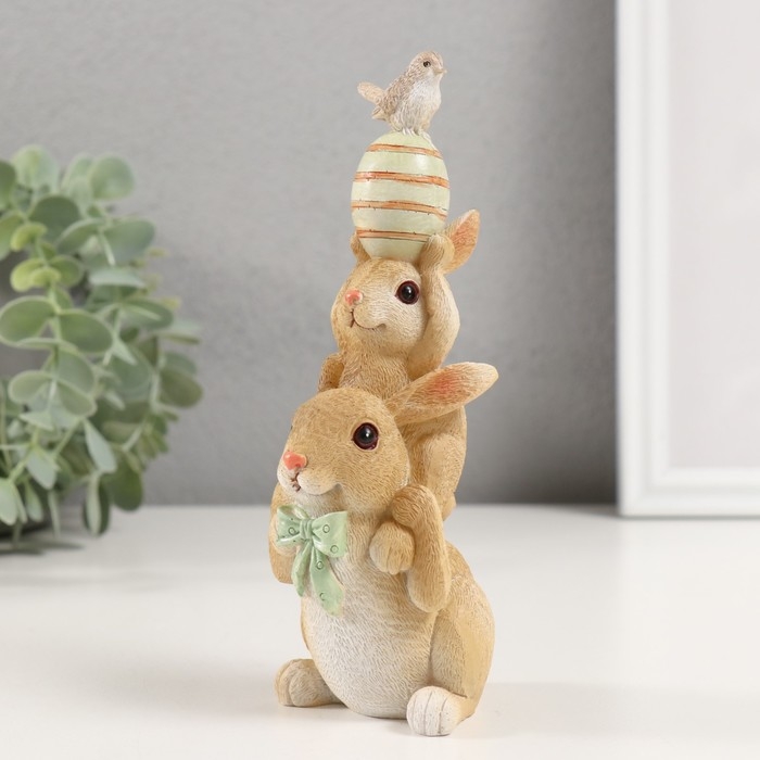 Сувенир полистоун "Пирамидка - Зайчики с пасхальным яичком и птичкой" 8,5х6х17,5 см