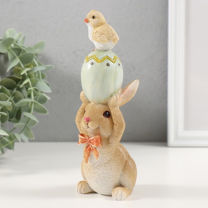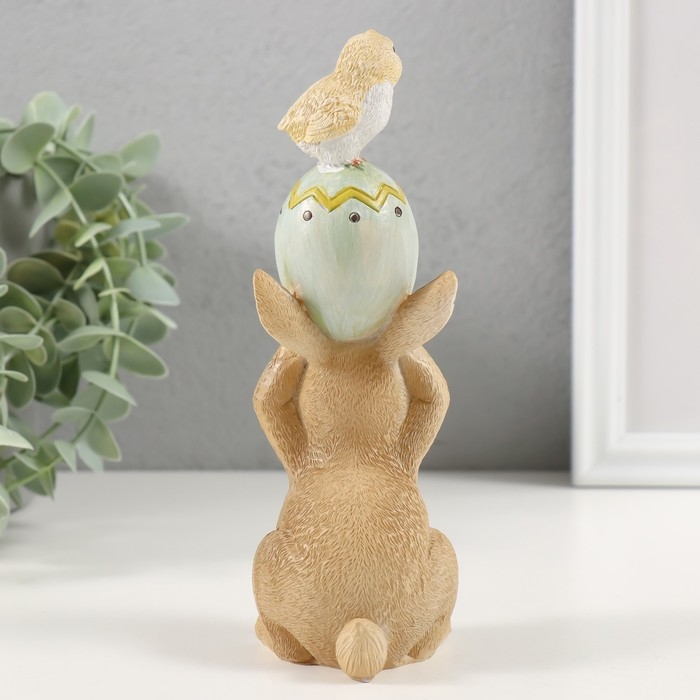 Сувенир полистоун "Зайчик с пасхальным яичком и цыплёнком" 8,5х6х17,5 см