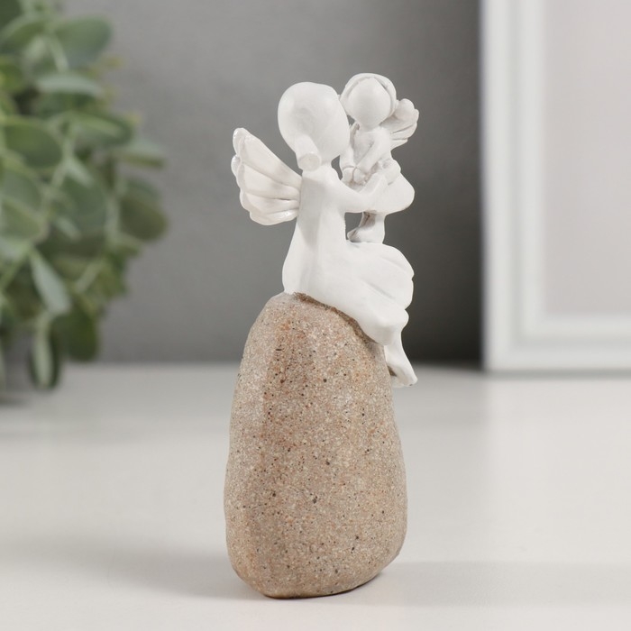 Сувенир полистоун "Мама с дочкой-ангелом, на камне" 5х3,5х10,5 см