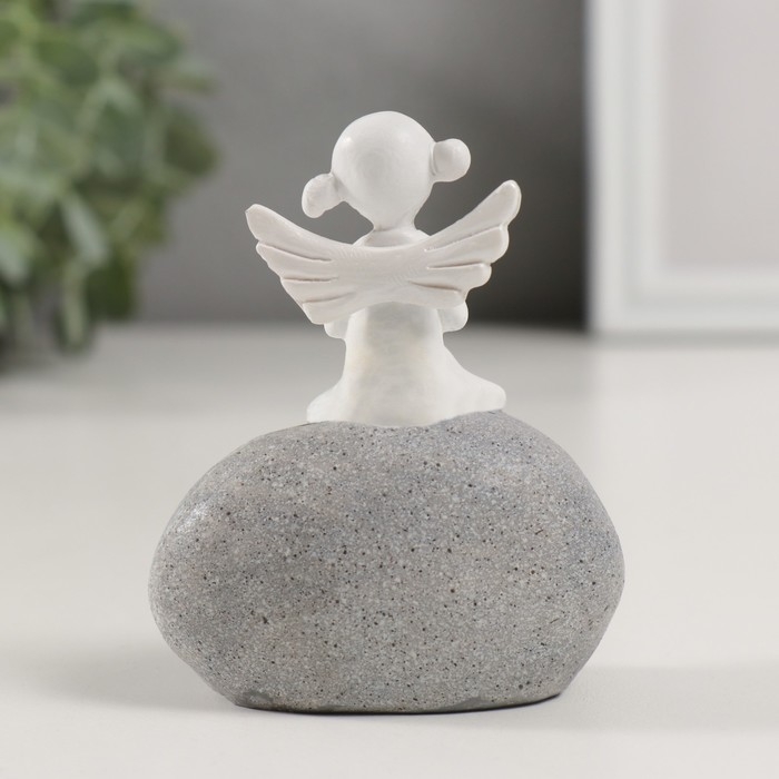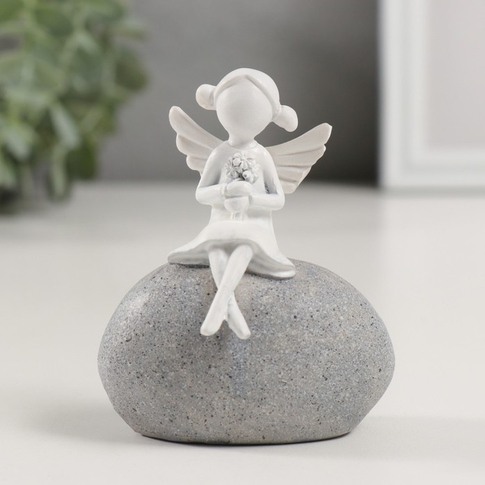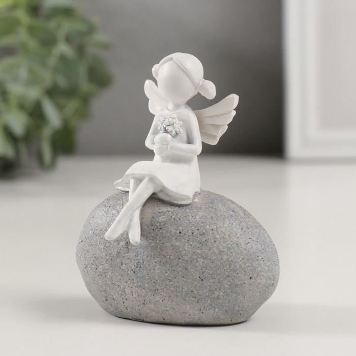 Сувенир полистоун "Девочка-ангел с букетом, на камушке" 7х4,5х8,5 см