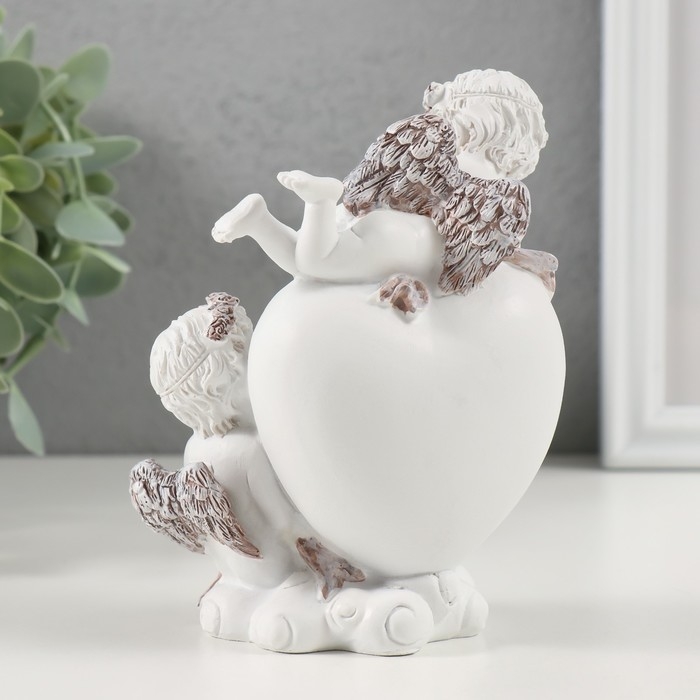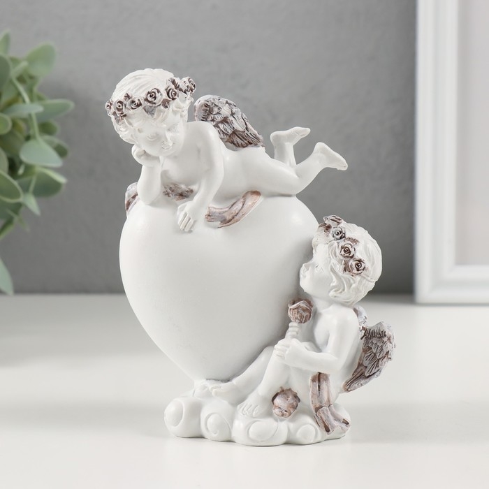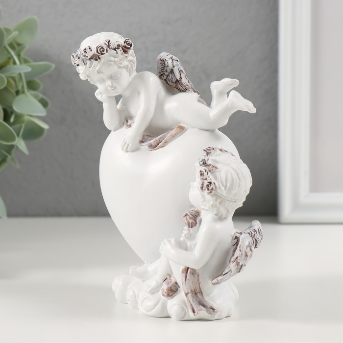 Сувенир полистоун "Пара ангелочков у сердца" кофейный венок 10,5х6х13 см