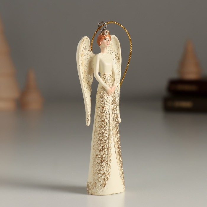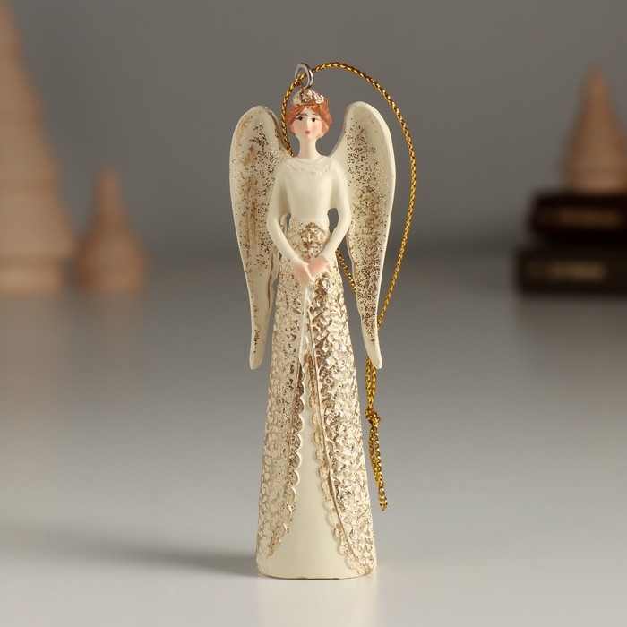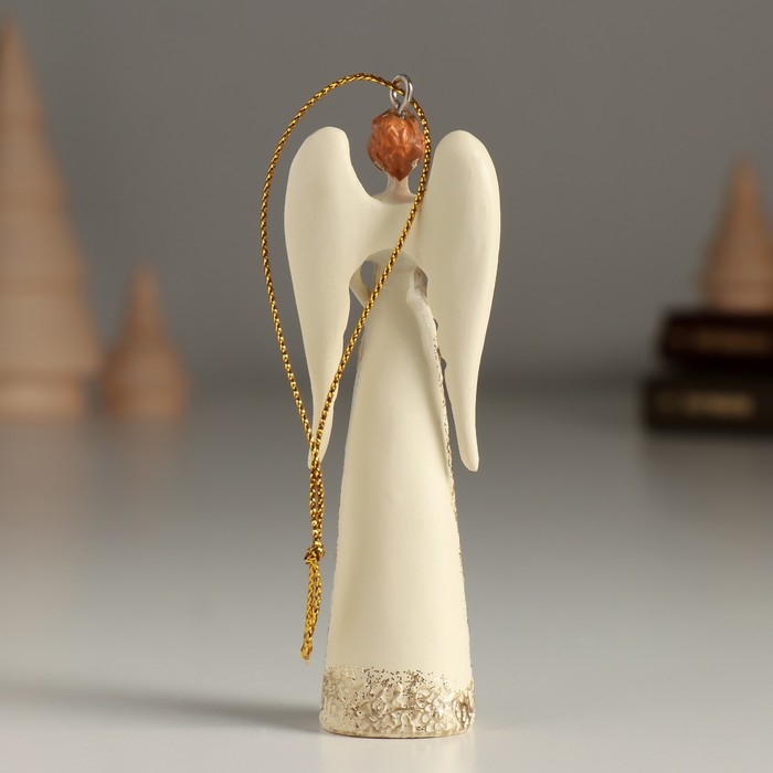 Сувенир полистоун подвеска "Ангел в бежевой блузке с воротничком" 3,5х2х10 см