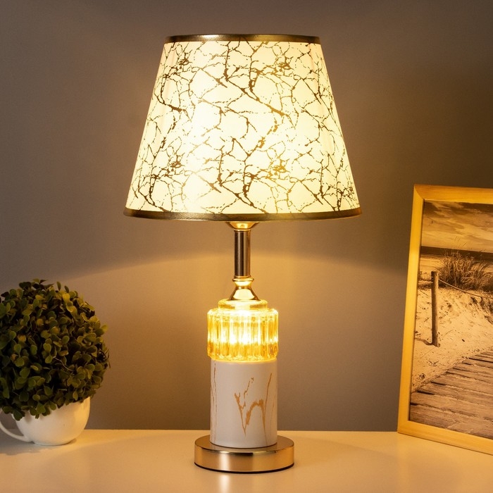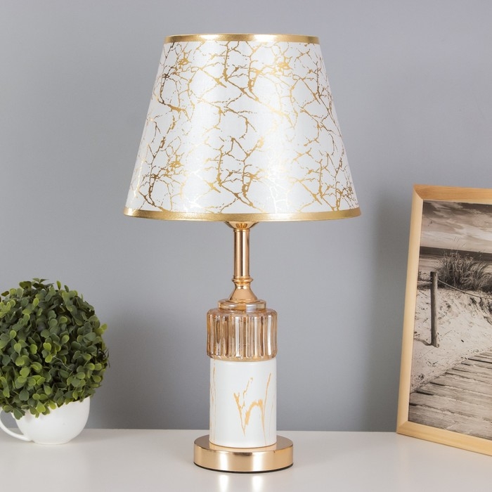 Лампа настольная "Рамира" 1х40Вт Е27+подсветка, белый/золото 27х27х48см
