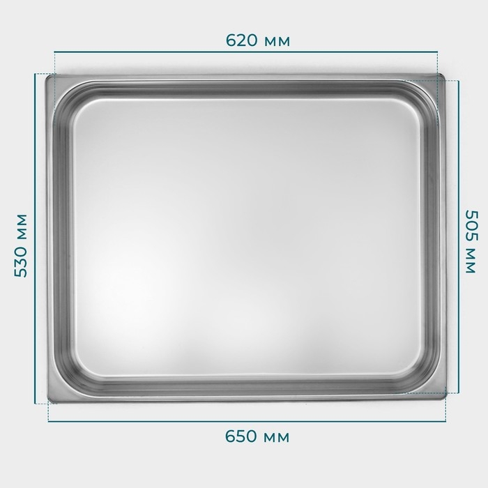 Гастроемкость 2/1 из нержавеющей стали, 65 мм, 65,4×53,6×6,5 см, толщина 0,8 мм