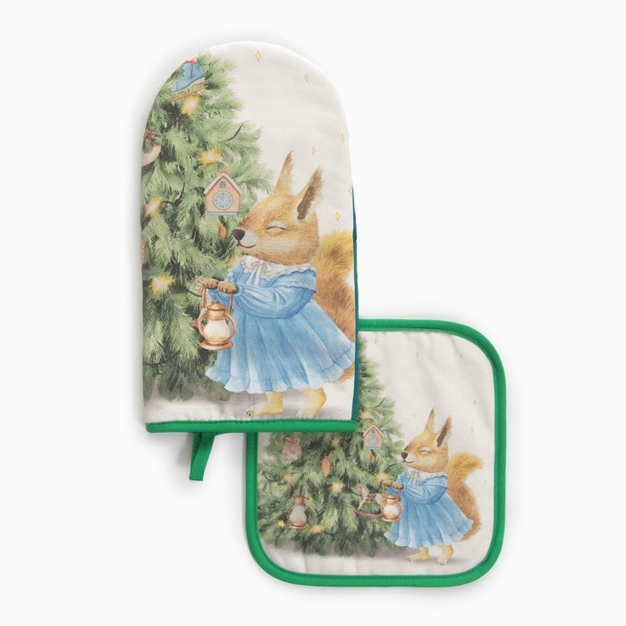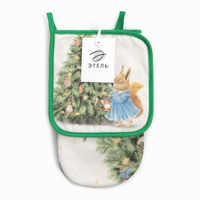 Набор кух. "Сказочная ёлка" варежка-прихватка 15х28см, прихватка 19х19см,100%хл
