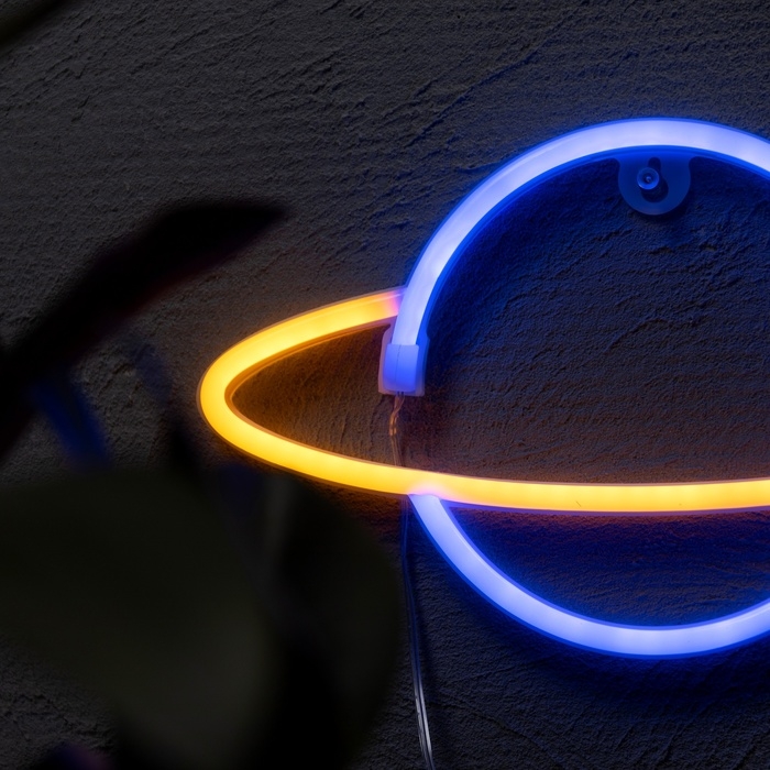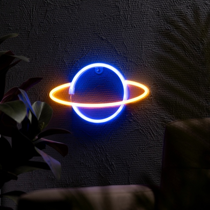 Неоновая вывеска «Планета» 30 x 17.5 см, батарейки AAx3 (нет в комплекте) + USB, свечение сине-оранжевое