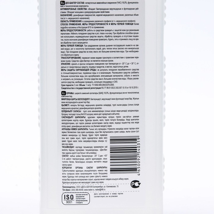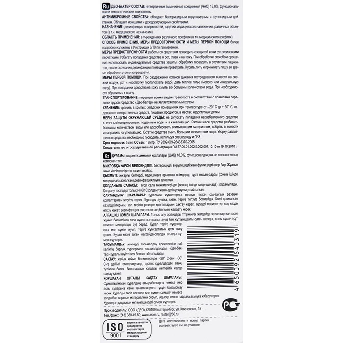 Дезинфицирующее средство Део-Бактер, без отдушки, 1 л