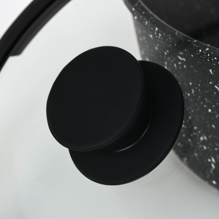 Крышка стеклянная для сковороды и кастрюли Доляна, универсальная с силиконовым, ободком и ручкой, 24/26/28 см, цвет чёрный