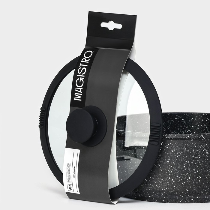 Крышка из жаропрочного стекла Magistro, со сливом, с силиконовым ободком и ручкой, d=20 см