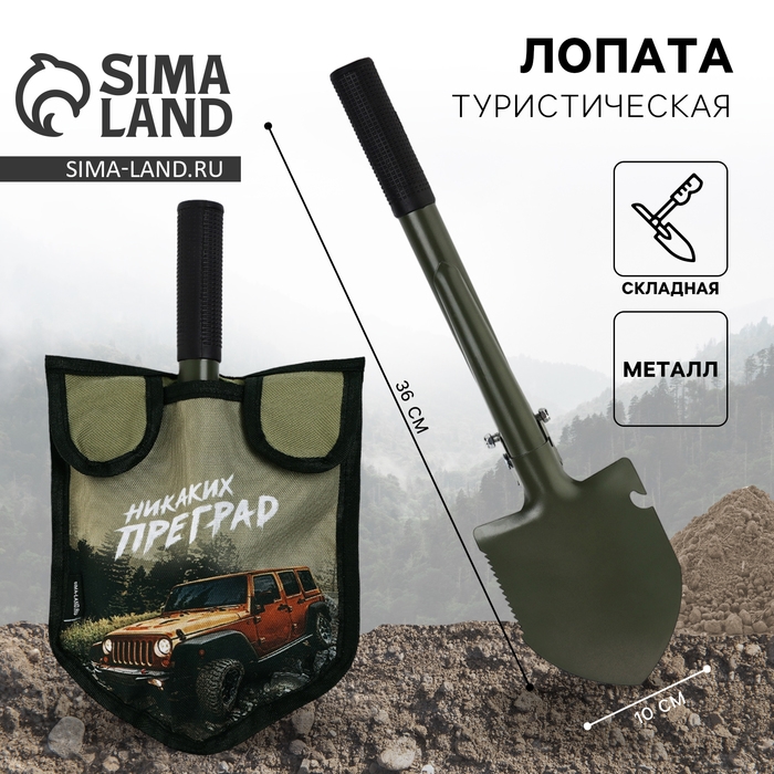 Лопата туристическая, складная «Никаких преград», 36 х 10 см., металлический черенок с ручкой, в чехле
