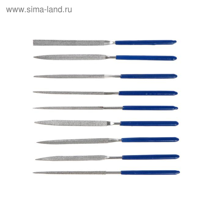 Набор надфилей алмазных ТУНДРА, обрезиненные рукоятки, 70 х 140 х 3 мм, 10 шт.