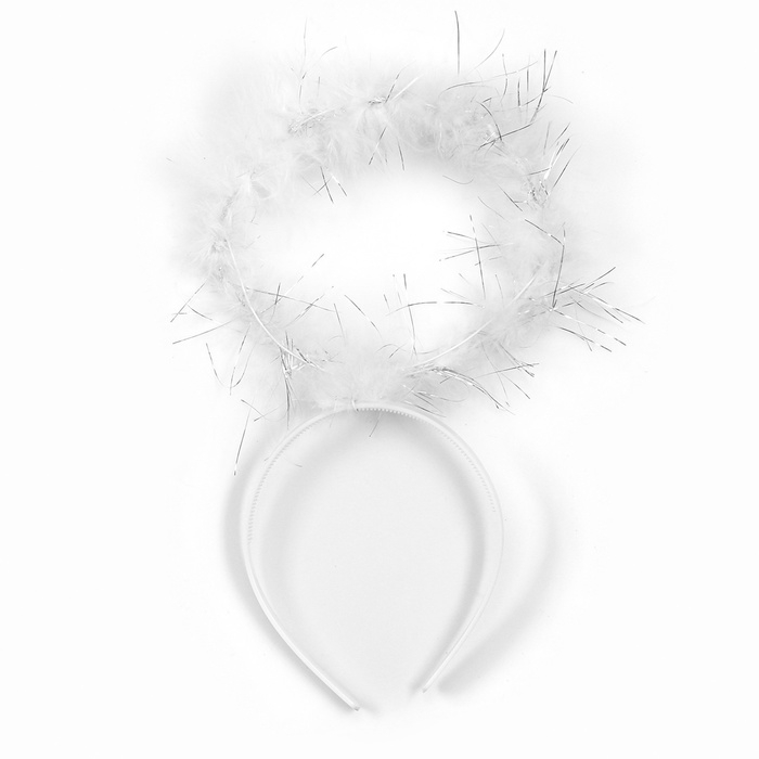 - Ободок-нимб украшен красивым пышным пухом