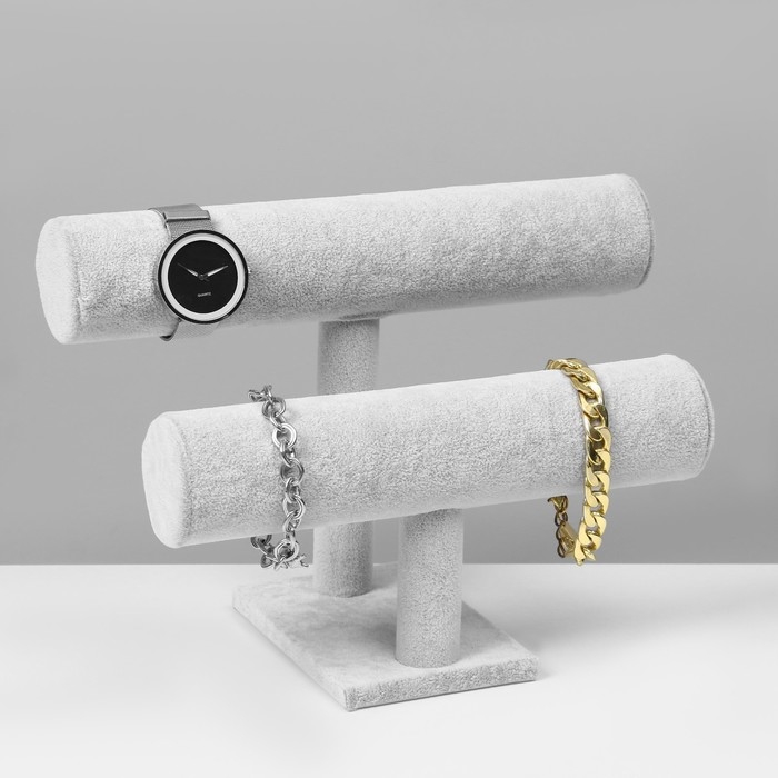 Подставка для часов, браслетов, двухуровневая, флок, 25,5×13×19 см, d=5 см, цвет серый