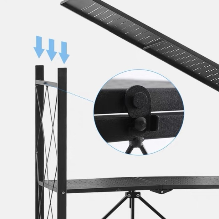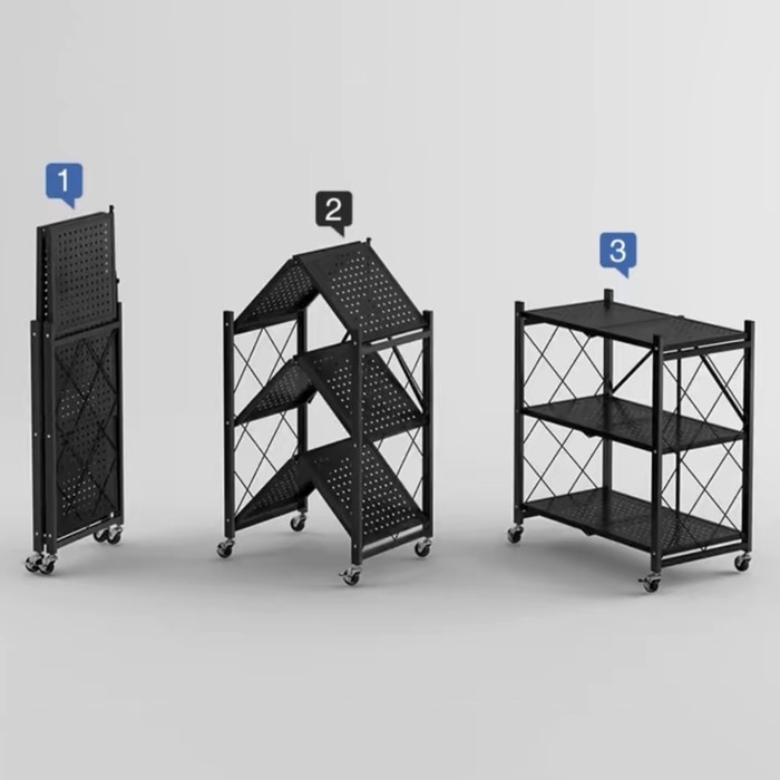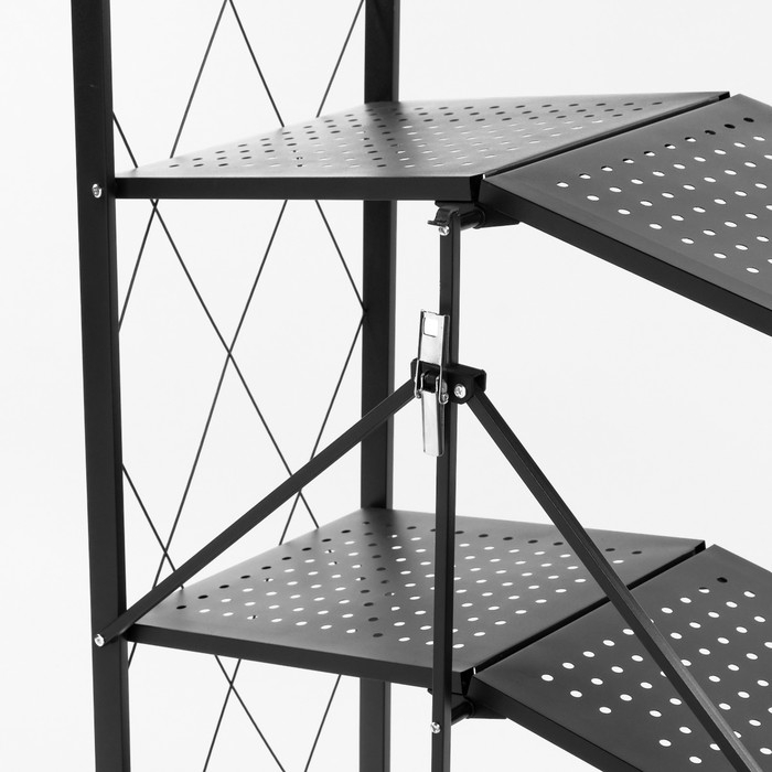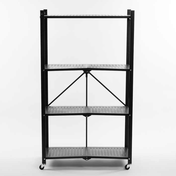 Стеллаж складной на колесах, 4 полки, 72×34×122см, цвет чёрный матовый