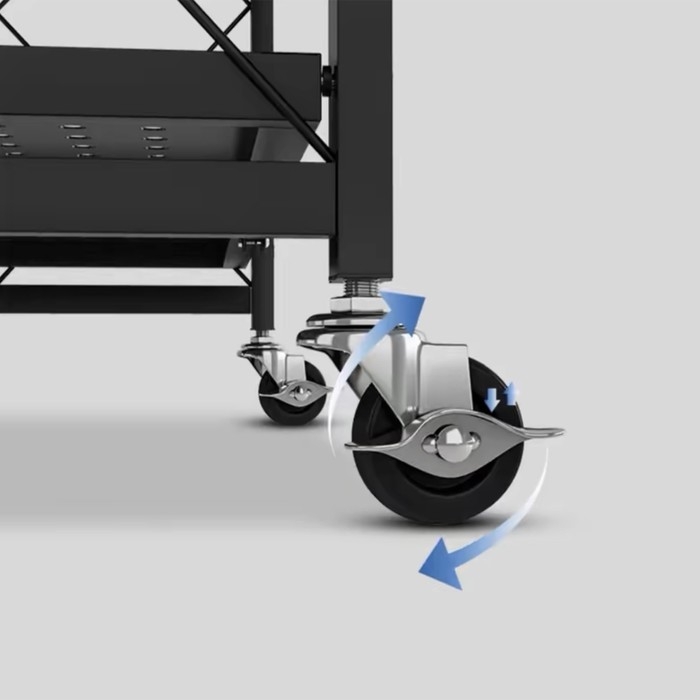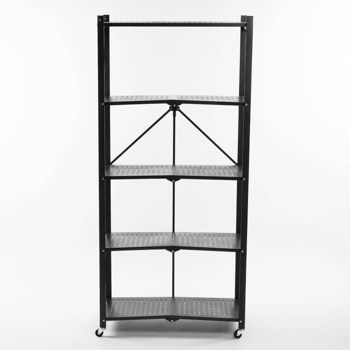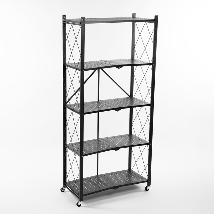 Стеллаж складной на колесах, 5 полок, 72×36×162,5см, цвет чёрный матовый