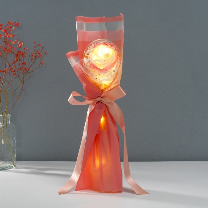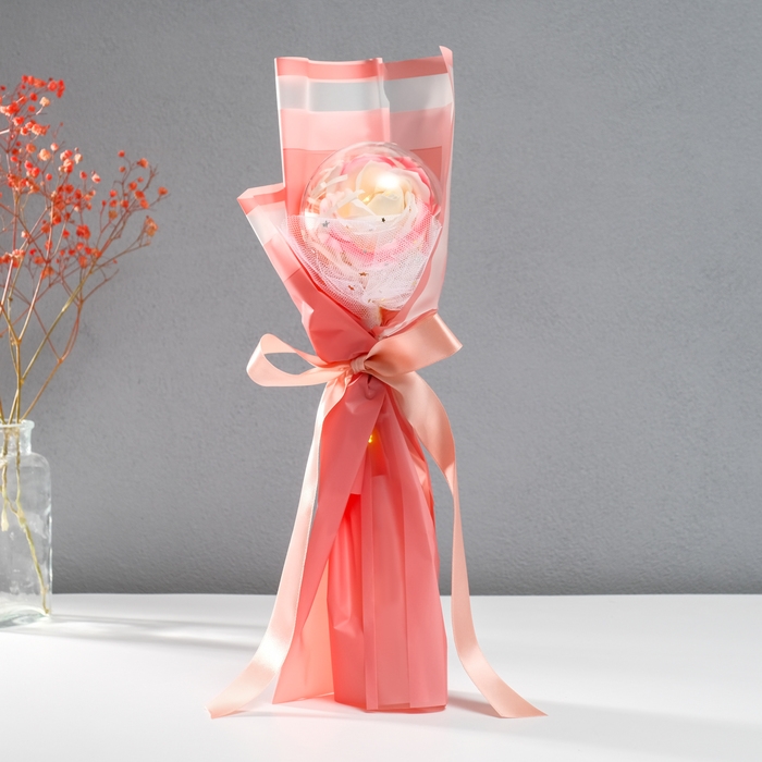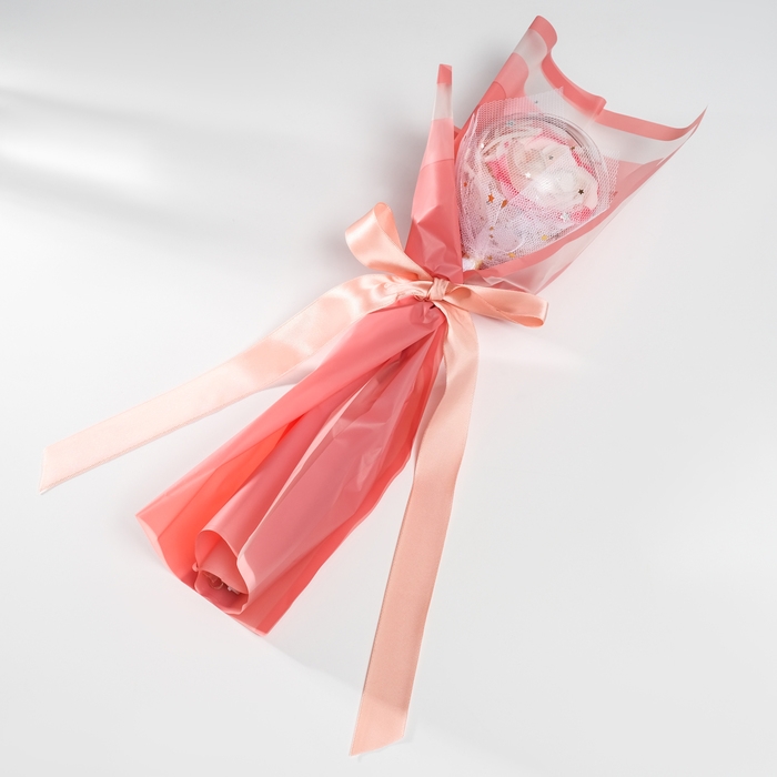 Букет из мыльных лепестков "Роза в шарике" розовый 8,5х8,5х36 см