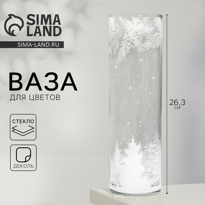 Ваза для цветов, новогодняя «Снежный лес», на Новый год, стекло, высота 26, 3 см