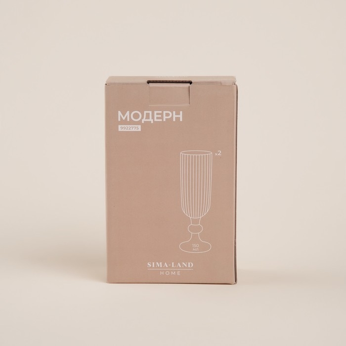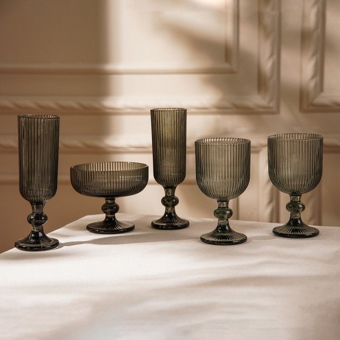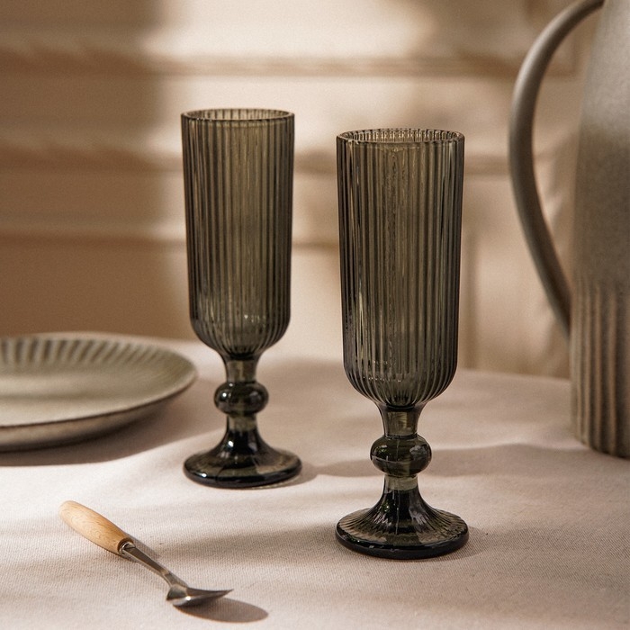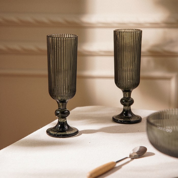 Набор бокалов для шампанского стеклянный SL Home «Модерн», 150 мл, 5,5×18,5 см, цвет графитовый