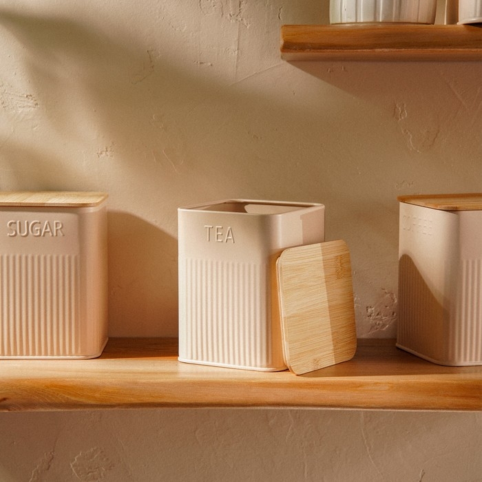 Изготовленная из оцинкованной стали, эта банка не только красива, но и долговечна. Её рельефная текстура и квадратная форма привносят в интерьер нотки современного минимализма. С объёмом 1,3 литра она идеально подходит для хранения круп, сахара, муки и других сыпучих продуктов.