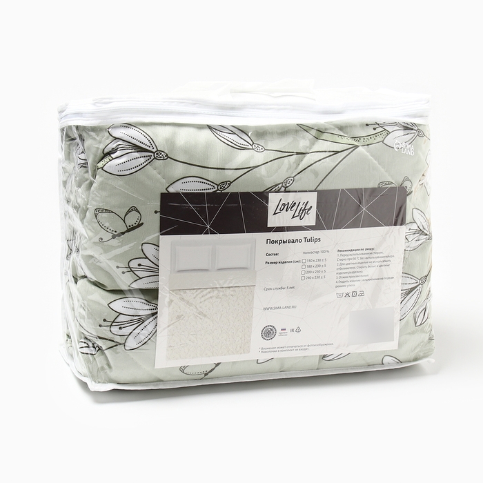 Покрывало LoveLife 2 сп Tulips 180*230±5 см, жатка, 100% п/э