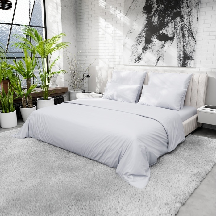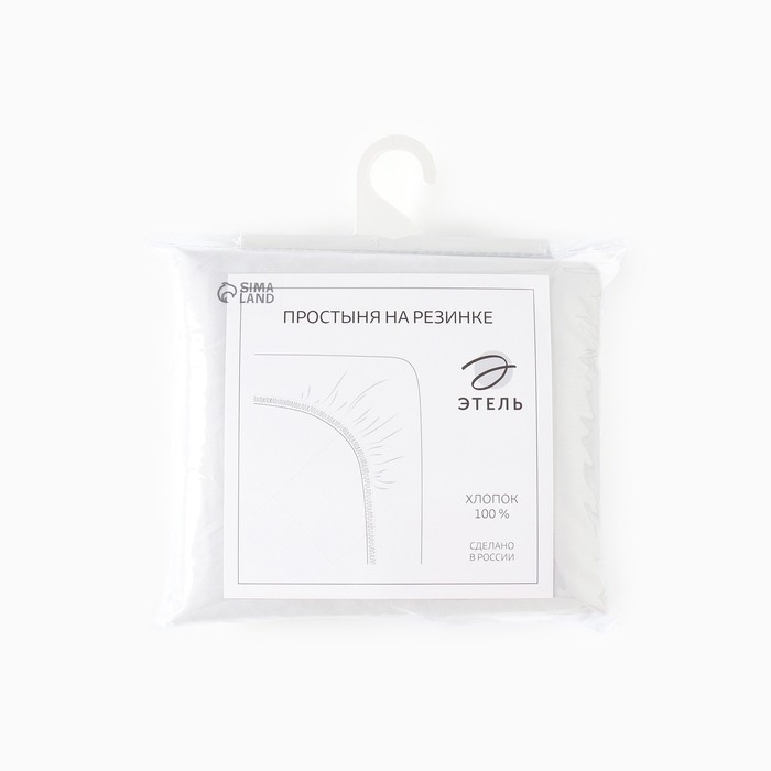 Простыня на резинке 220ТС Этель 180*200+30 см, цв.светло-серый, сатин, 100% хлопок