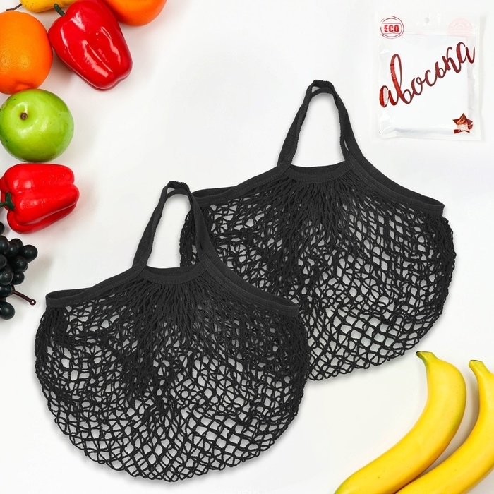 Авоська 34 х 34 см, ручка 12 см, клетка 1.5 см, черная, 2 штуки