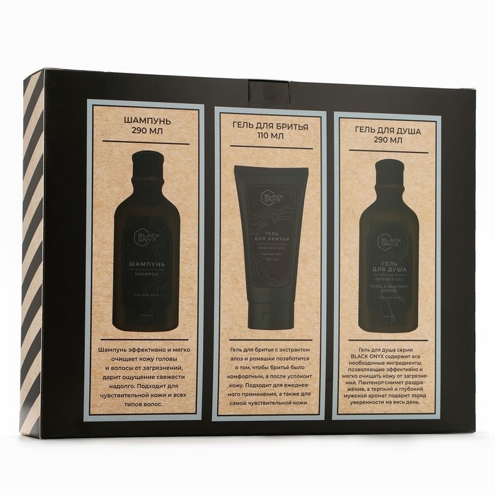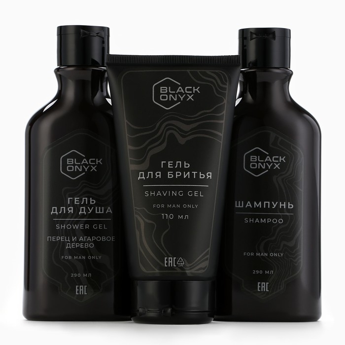 Подарочный набор косметики BLACK ONYX, гель для душа 290 мл, шампунь для волос 290 мл, гель для бритья 110 мл, аромат перца и агарового дерева, HARD LINE
