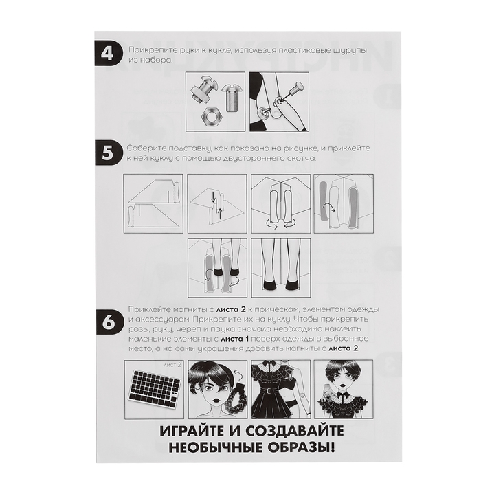 Магнитный набор «Твоя модная кукла. Агата» станет отличным выбором для юных стилистов и любителей моды. В комплекте представлены кукла высотой 70 см, подставка, 36 элементов одежды и аксессуаров, позволяющих создавать различные образы. Набор включает разные прически, раскраски и стразы, чтобы дети могли реализовать свои самые креативные идеи. Каждый образ выполнен в уникальном готическом стиле, что добавляет игре особого шарма и оригинальности.