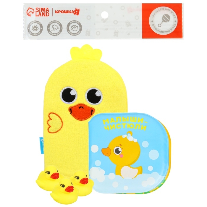 Набор для ванны «Утенок», мочалка с игрушкой, 2 тактильных мячика, Крошка Я