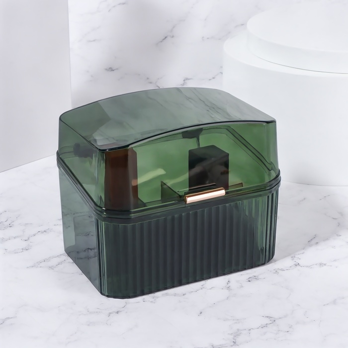 Органайзер для ватных палочек и дисков, с крышкой, 3 секции, 14 × 14 × 13 см, цвет прозрачный