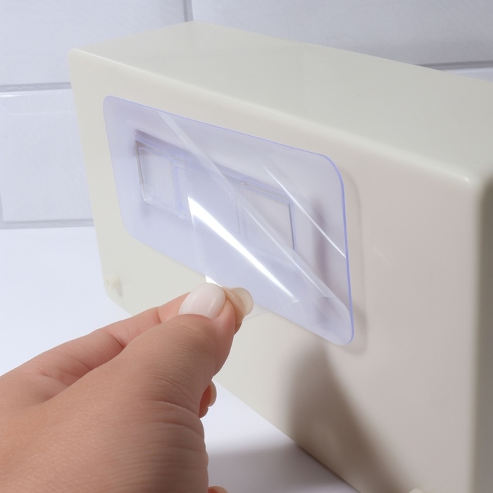 Прозрачная крышка позволит видеть содержимое и защитить его от внешних факторов: воды, пыли или грязи. В комплекте клеевые пластины, которые обеспечивают надежную фиксацию на стене, не оставляя следов и не повреждая поверхности.