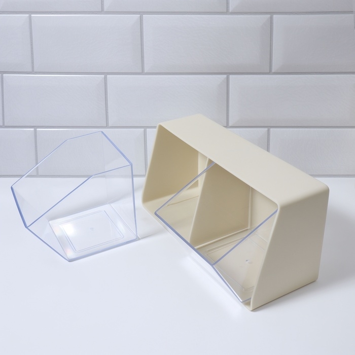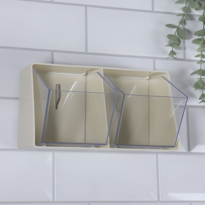 Органайзер для хранения, подвесной, 2 секции, 22,5 × 13,5 × 12 см, цвет молочный/прозрачный