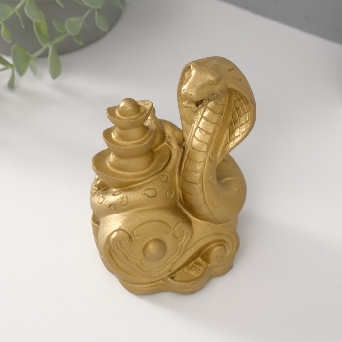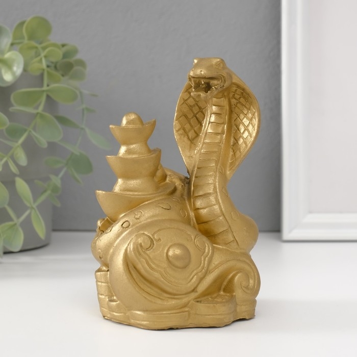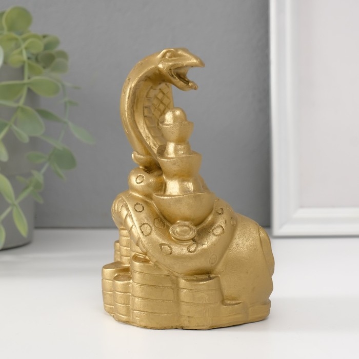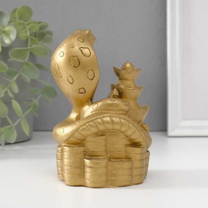 Нэцкэ полистоун "Кобра с золотыми слитками" 8х8,7х13,5 см