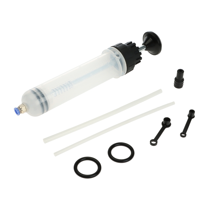Шприц для замены технических жидкостей в автомобиле — это инструмент, который позволяет дозированно подавать масло, трансмиссионную жидкость и другие вещества в узлы и агрегаты машины, такие как коробка передач, мосты и подшипники. Объём шприца составляет 200 мл, что обеспечивает достаточное количество жидкости для одной заправки. Этот шприц станет незаменимым помощником для автолюбителей и профессионалов, занимающихся обслуживанием и ремонтом автомобилей, обеспечивая точность и комфорт при работе с техническими жидкостями.