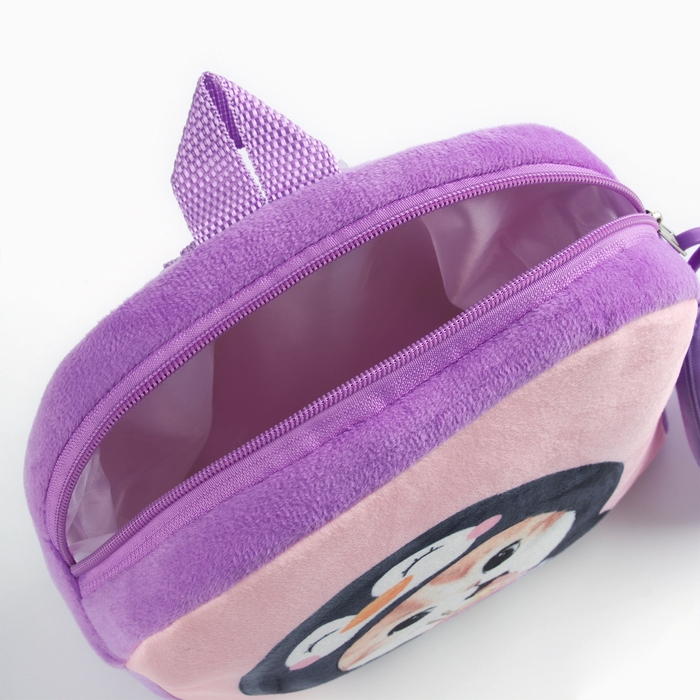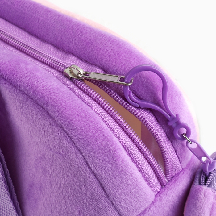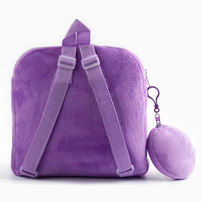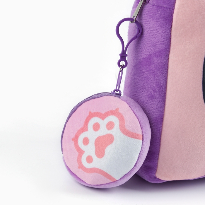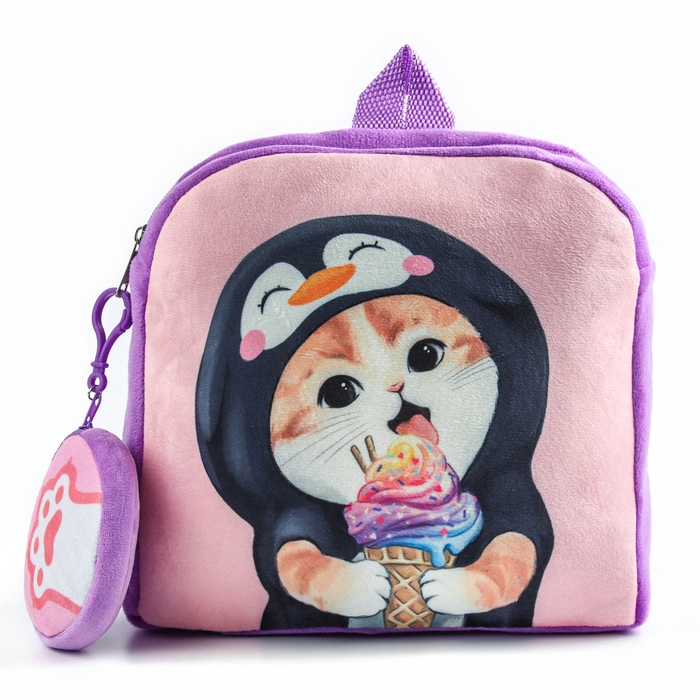 Рюкзак детский плюшевый с кошельком "Котик с мороженкой", 24*24 см, цвет сиреневый