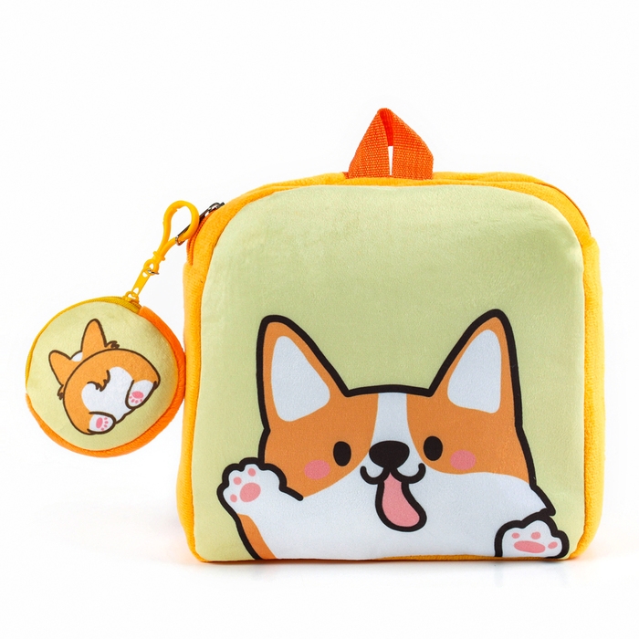 Рюкзак детский плюшевый с кошельком "Корги", 24*24 см, цвет оранжевый