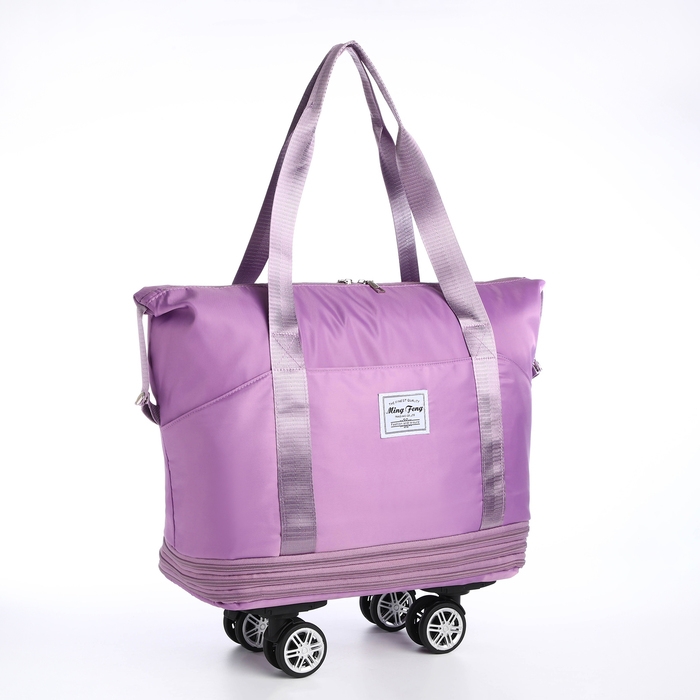 Сумка дорожная 20" на съемных колёсах, отдел на молнии, с увеличением, 3 наружных кармана, держатель для чемодана, цвет сиреневый