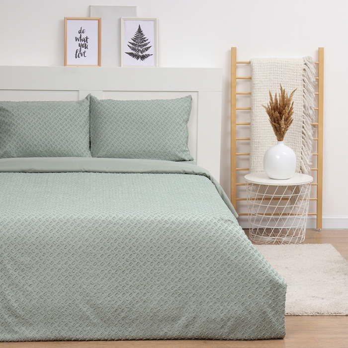 Постельное бельё LoveLife Tufting дуэт "Квадрат" 143*215см-2шт,230*240см,50*70см-2шт, цвет зеленый,110 г/м2