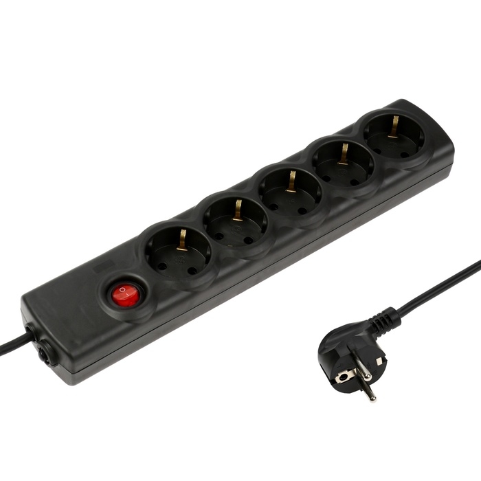 Сетевой фильтр Luazon Lighting, 5 розеток, 3 м, 2200 Вт, 3х0.75 мм2, 10 A, 220 В, c предохранителем, черный