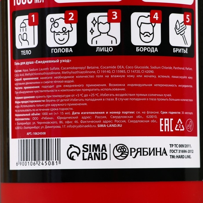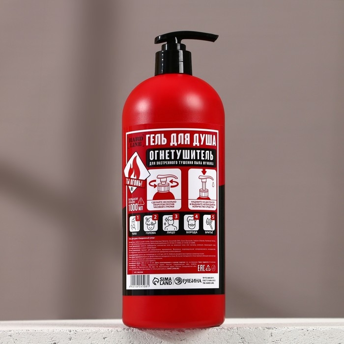 Гель для душа и шампунь для волос 2в1 "Огнетушитель пенный", 1 л (1000 мл), HARD LINE