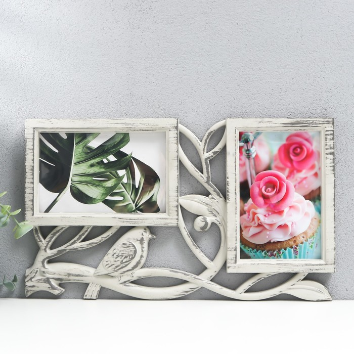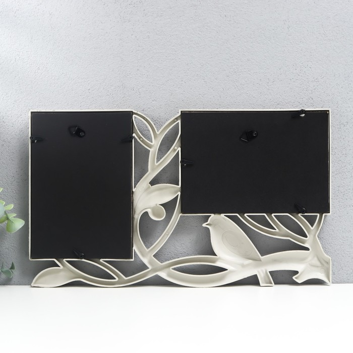 Фоторамка пластик на 2 фото 10х15 см "Птица счастья" песочная 21х35 см