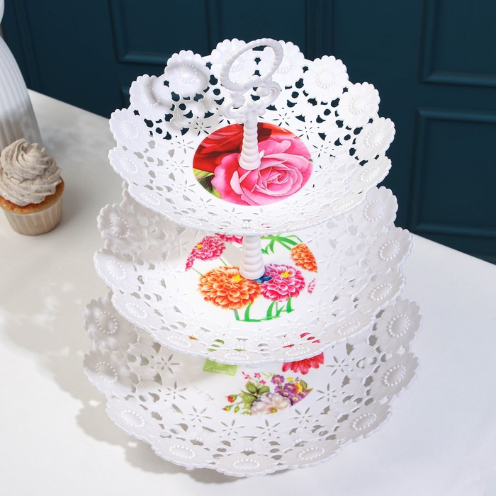 Этажерка-фруктовница «Клэр», 3 яруса, 33/33/38 см, рисунок МИКС
