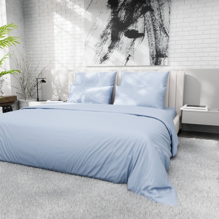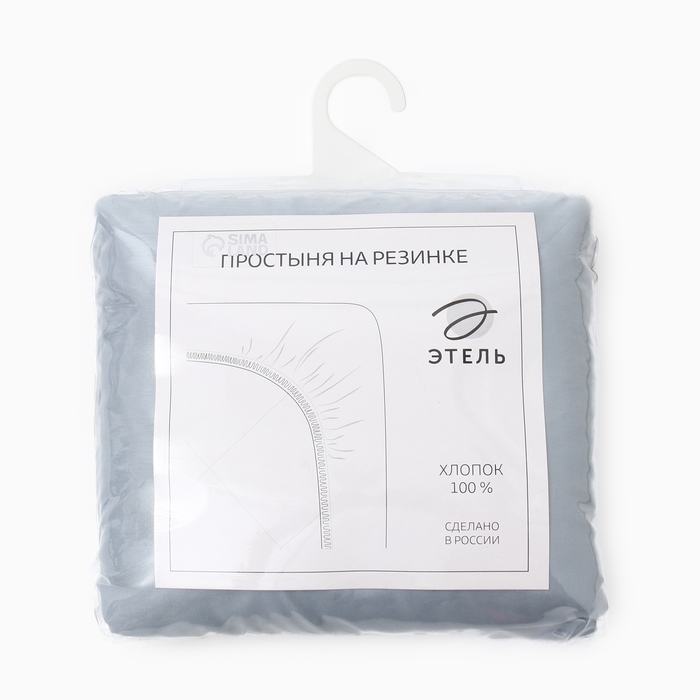 Простыня на резинке 220ТС Этель 160*200+30 см, цв.голубой, сатин, 100% хлопок