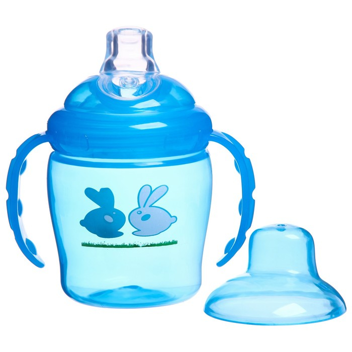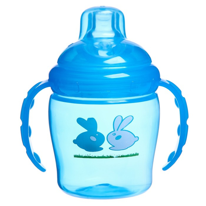 Поильник - непроливайка детский с мягким носиком, 250 мл., с ручками, цвет голубой