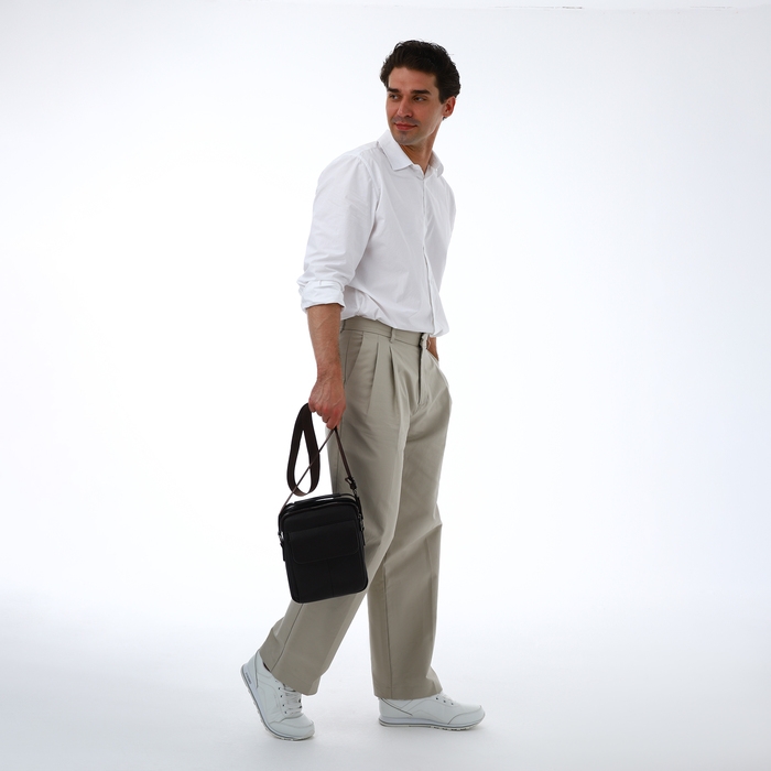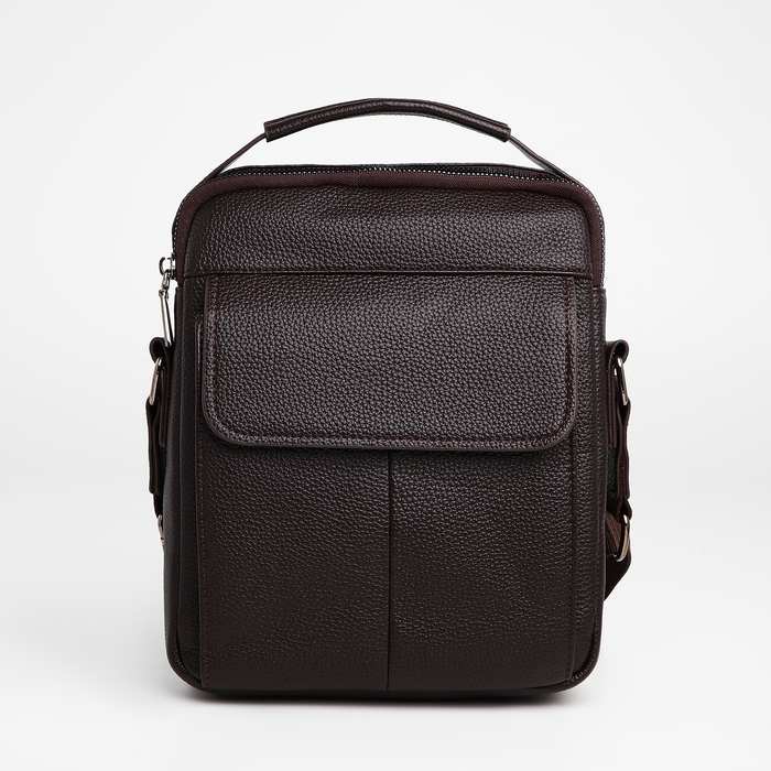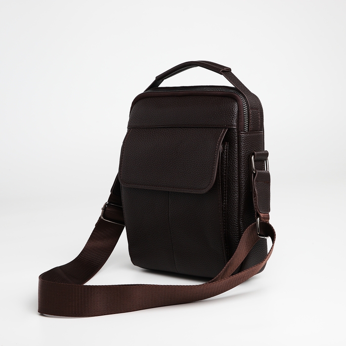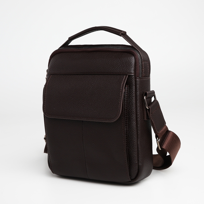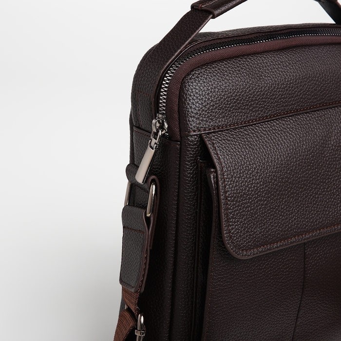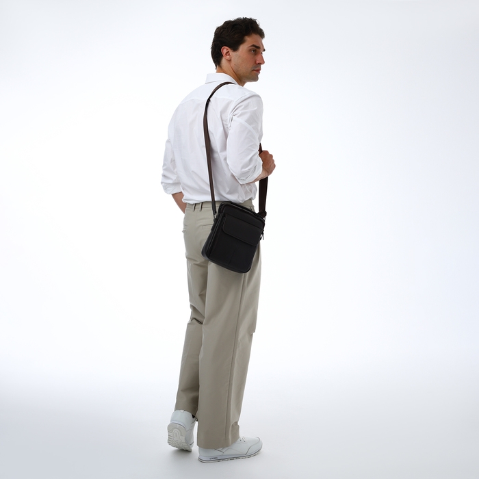 Сумка мужская через плечо TEXTURA, 2 наружных кармана, цвет коричневый